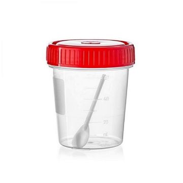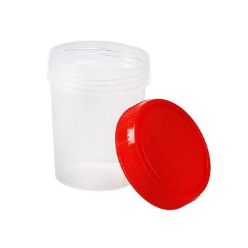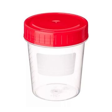 Баночка для мочи и кала снабжена герметично завинчивающейся крышкой красного цвета, обеспечивающей надежную защиту от протекания, расплескивания и ингаляционного контакта, что обеспечивает полную герметичность при транспортировке биологического материала.
