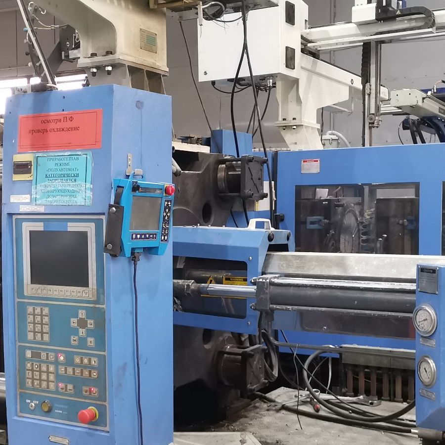 Расстояние между колоннами, мм:730 x 730. Высота п-ф (min-max), мм: 230-680 (730 обрезка). Ход подвижной плиты: 700. Ход толкателя: 160. Шнек, мм: 70. Скорость пластификации кг/час:161,6. Скорость впрыска см3/сек мин-макс: 421-1127. Вес впрыска гр: 1127. Объем впрыска см3: 1239. Давление впрыска бар: 1820.